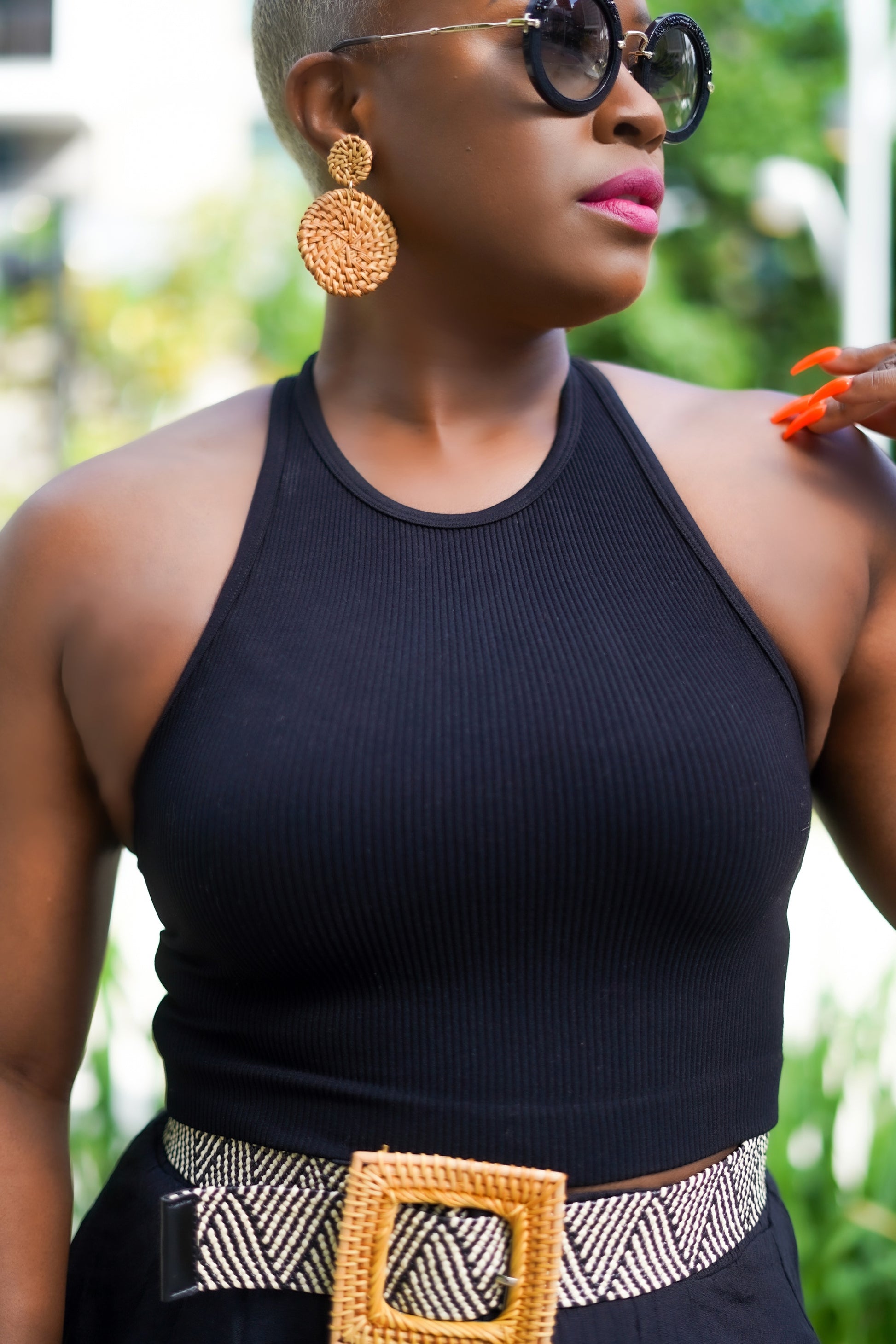 Caramel Queen Ribbed High Neck Cropped Top (Black)