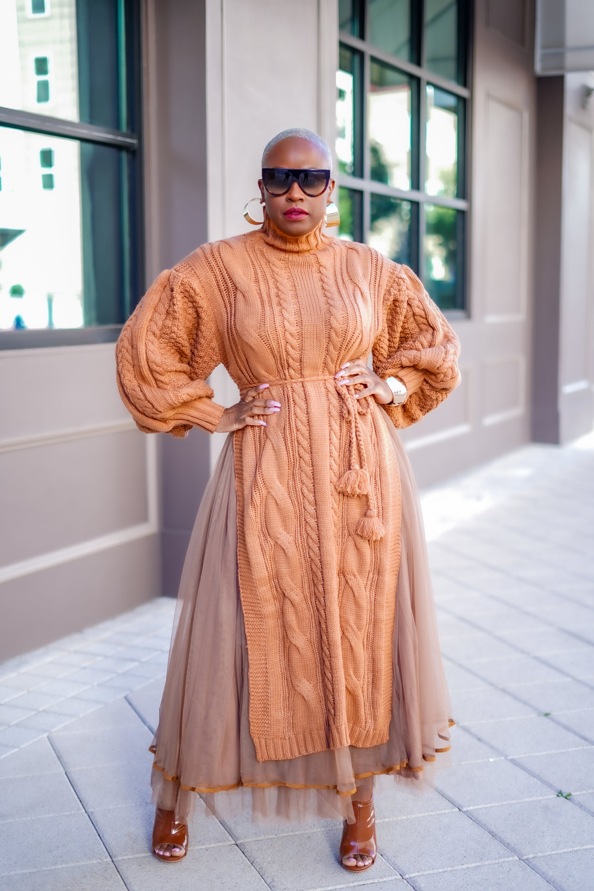 - Cable-knit sweater material