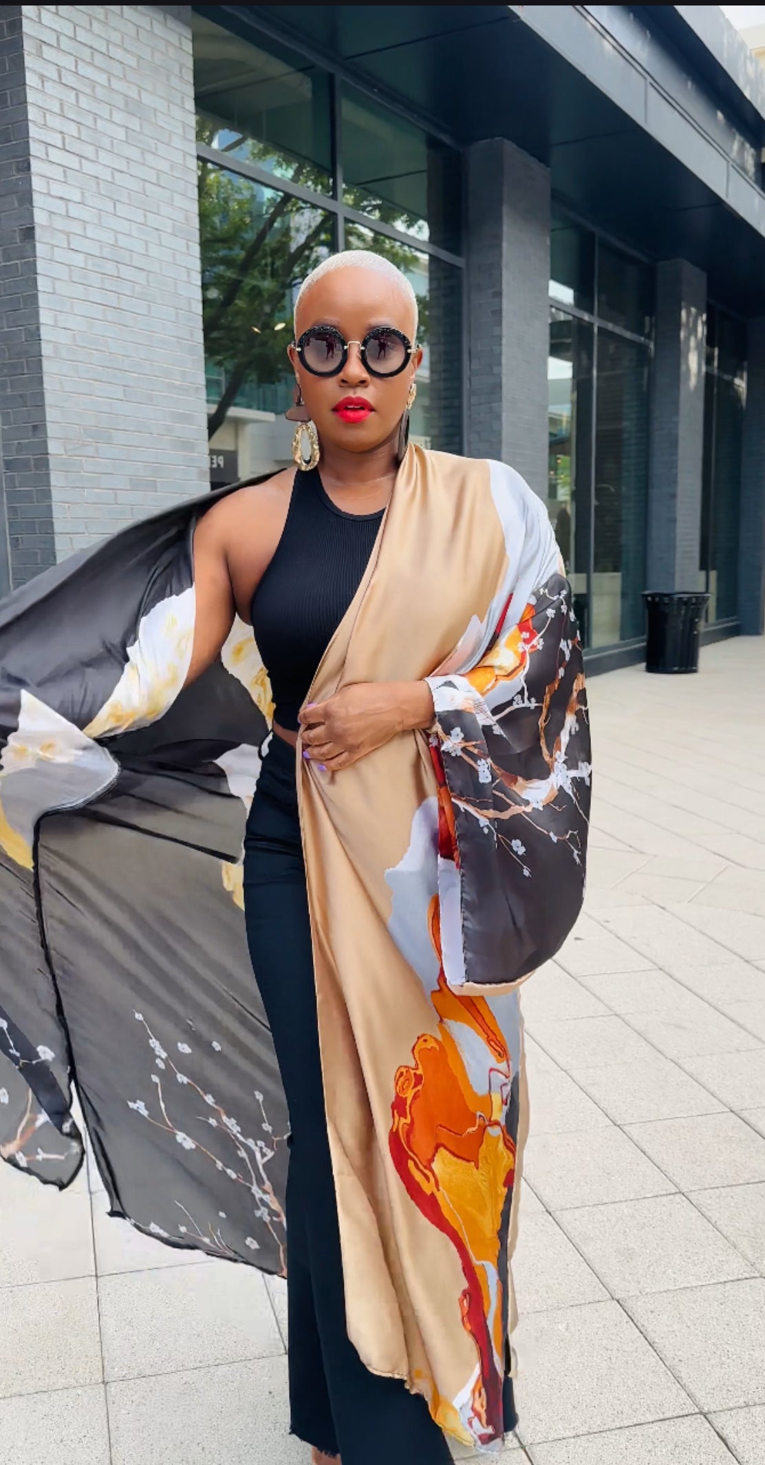 Floral Tan & Black Kimono--Will Ship The Week Of 11/10/25