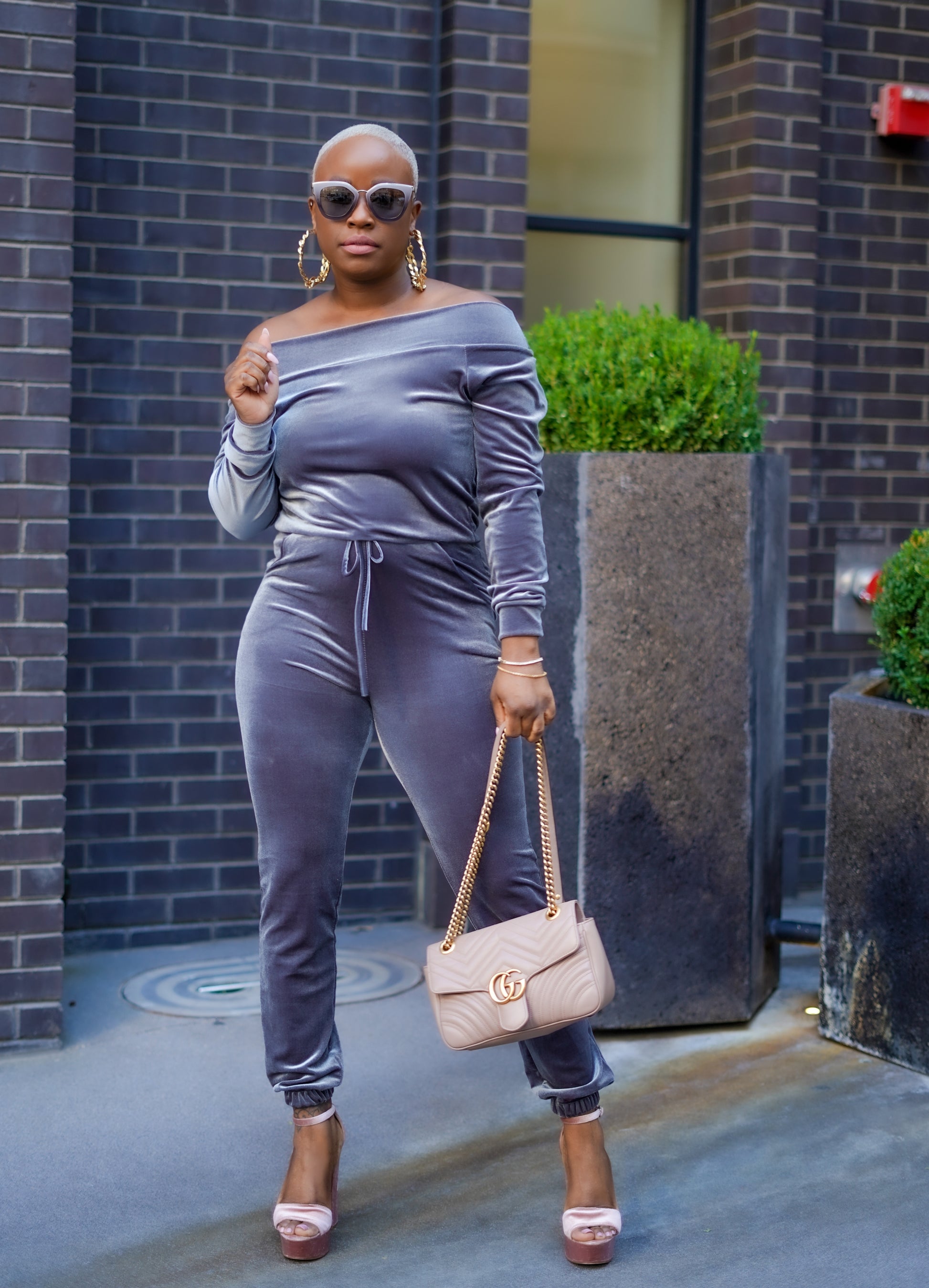 Girls Night Out Off The Shoulder Jumpsuit (Pewter Gray) No