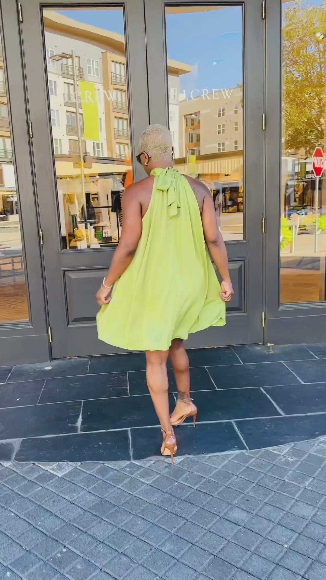 Mock Neck Halter Satin Mini Dress (Olive Green)