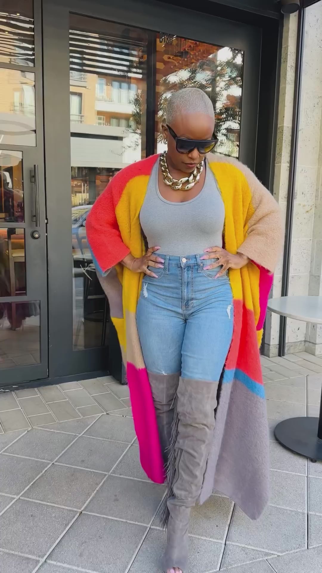 Oversized Open Front Poncho Sweater (Fuchsia/Gray Mix)--Will Ship The Week Of 11/10/25