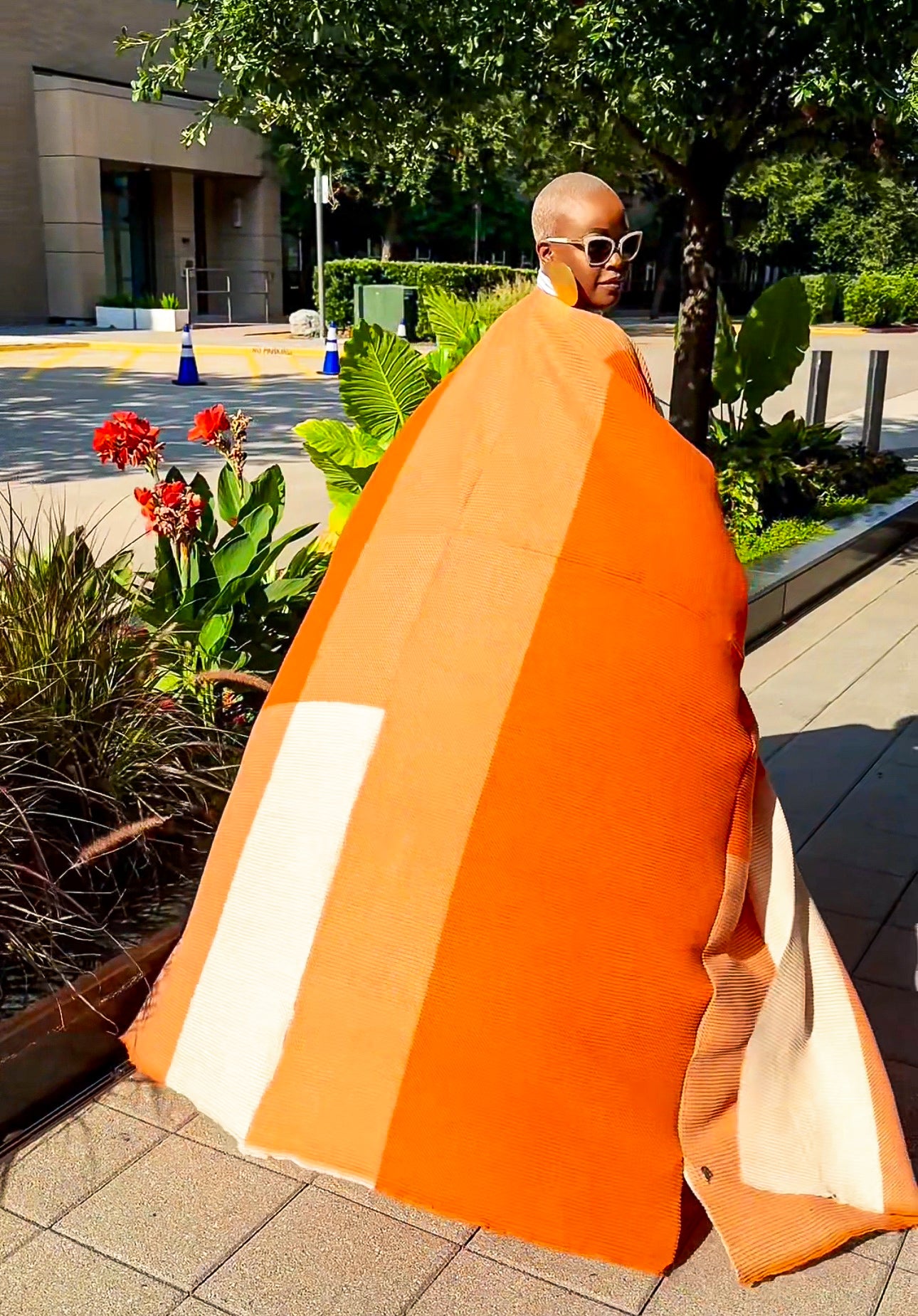 Wrap yourself in the essence of fall with our Pumpkin Spice Luxe Duster — a flowing, open-front knit that drapes effortlessly for an elegant yet cozy silhouette. In rich autumnal orange with warm cream paneling, this statement piece instantly elevates your look while keeping you wrapped in seasonal comfort.