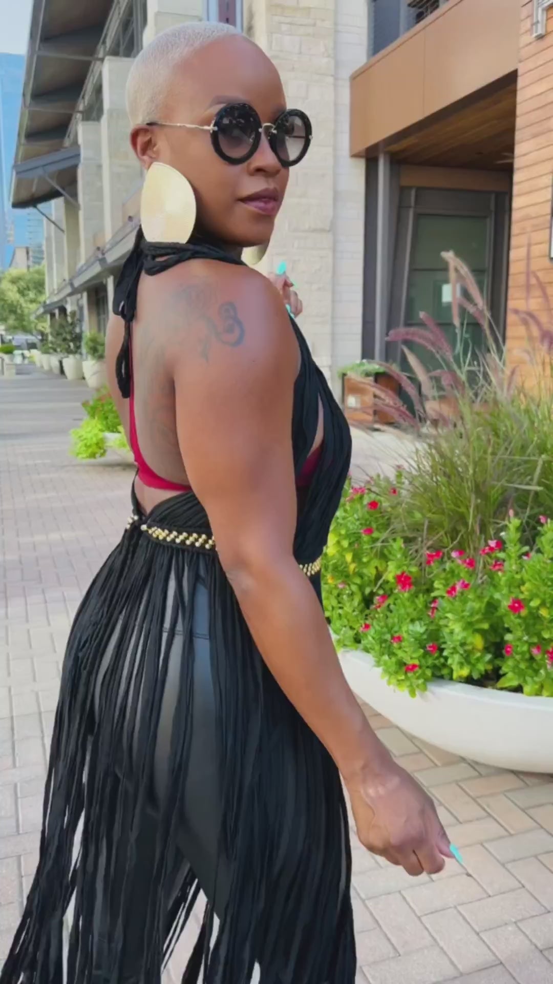 Retro Fringe Cover Up (Black)—Will Ship The Week Of 11/10/25