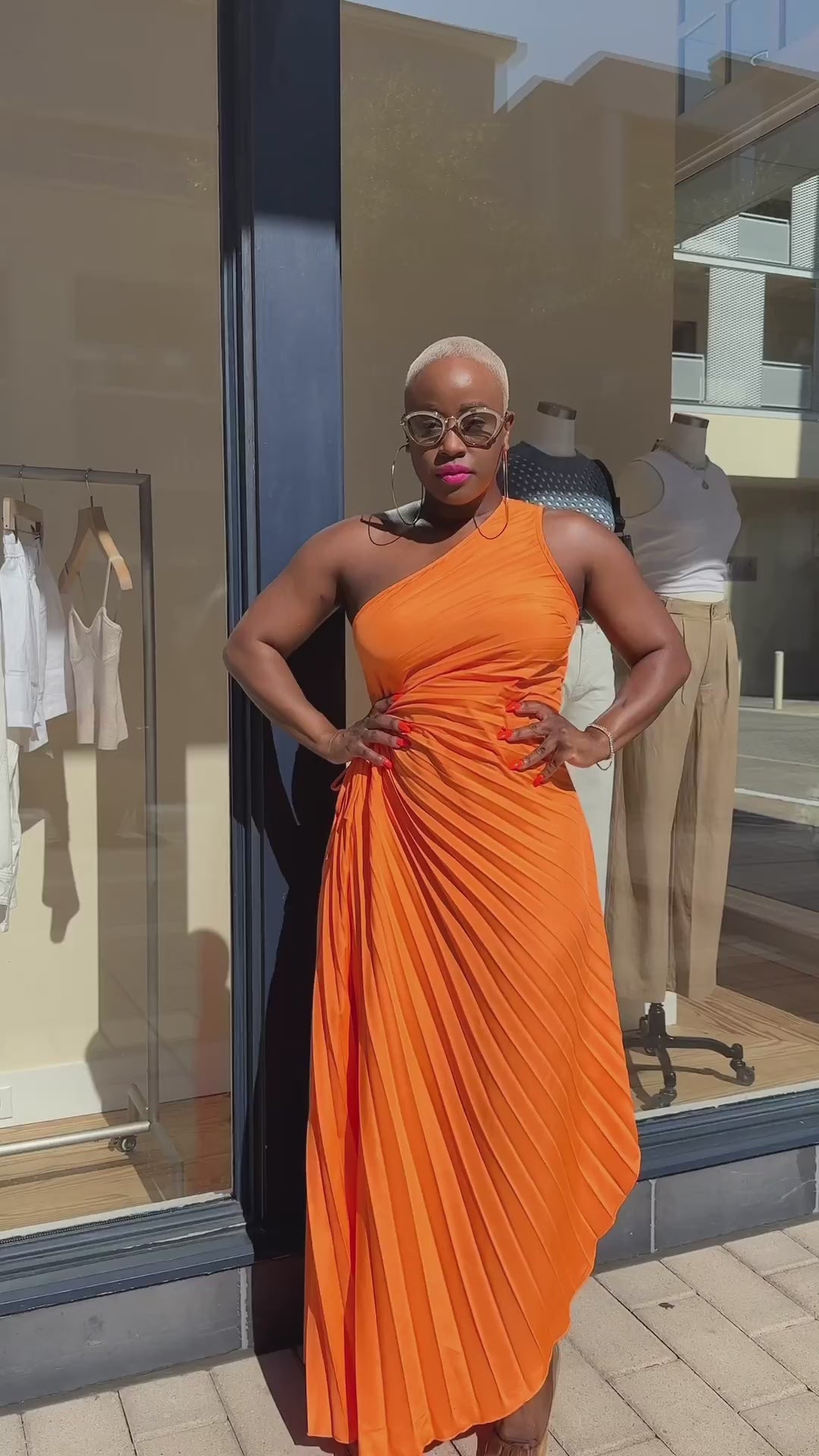 Isn't She Lovely Pleated Dress (Bright Orange)--Will Ship The Week Of 11/10/25