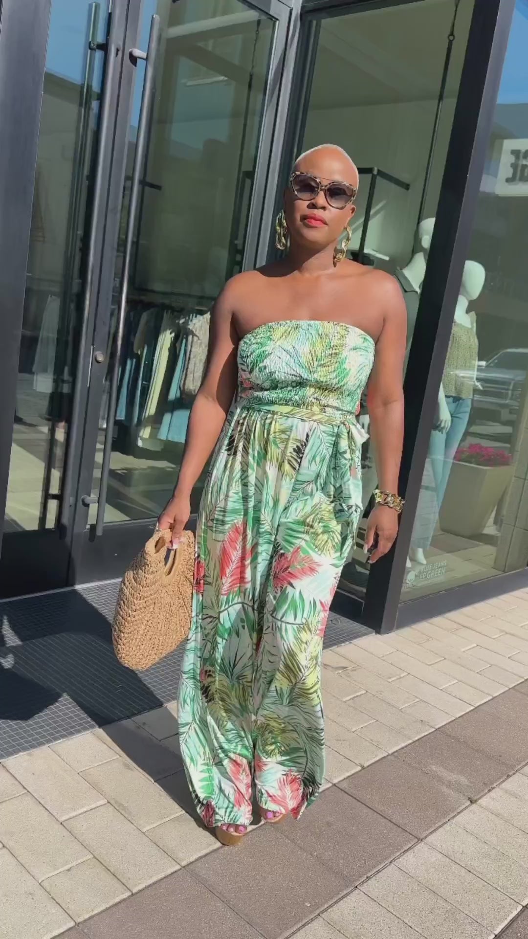 Summer Vacay Strapless Jumpsuit (Jungle Print)--Will Ship The Week Of 11/10/25