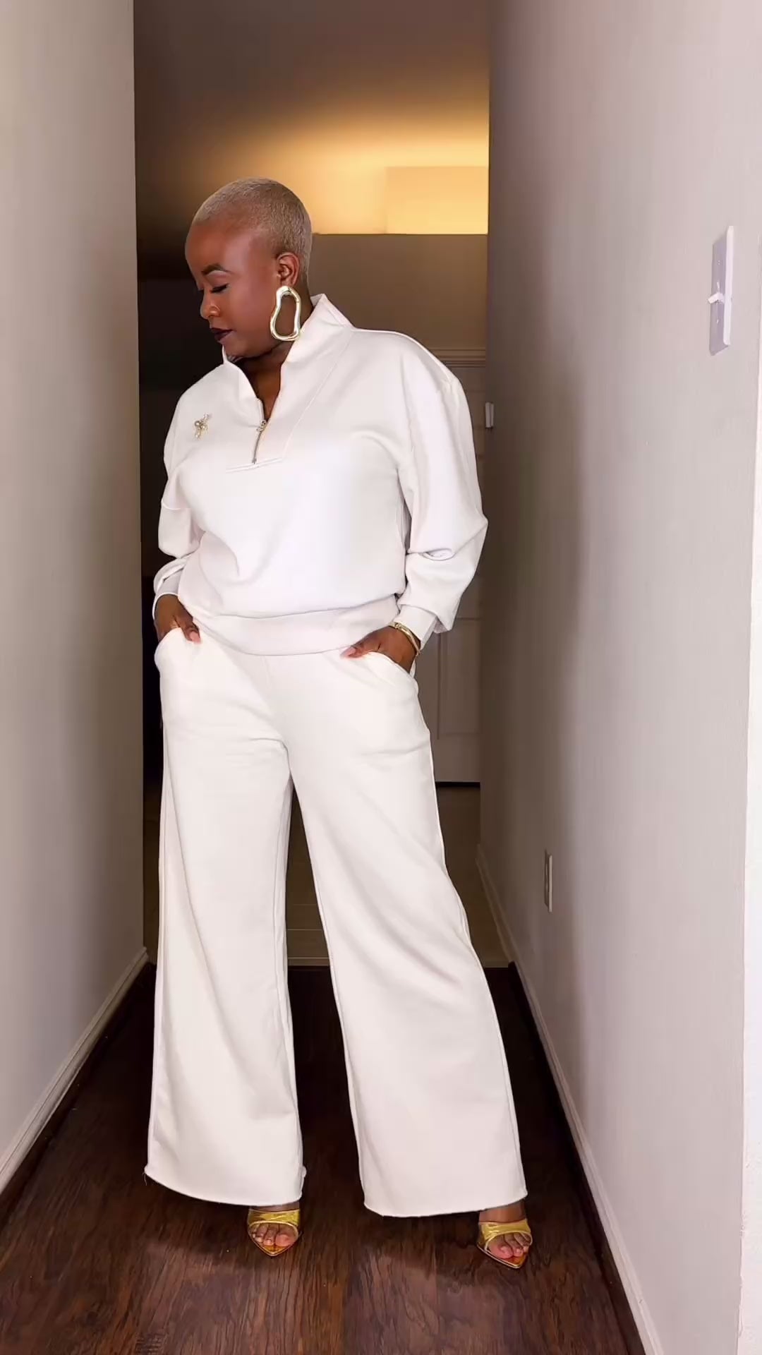 - Bottom (Wide-Leg Sweatpants): 60% Cotton, 40% Polyester — soft fleece with a relaxed drape.