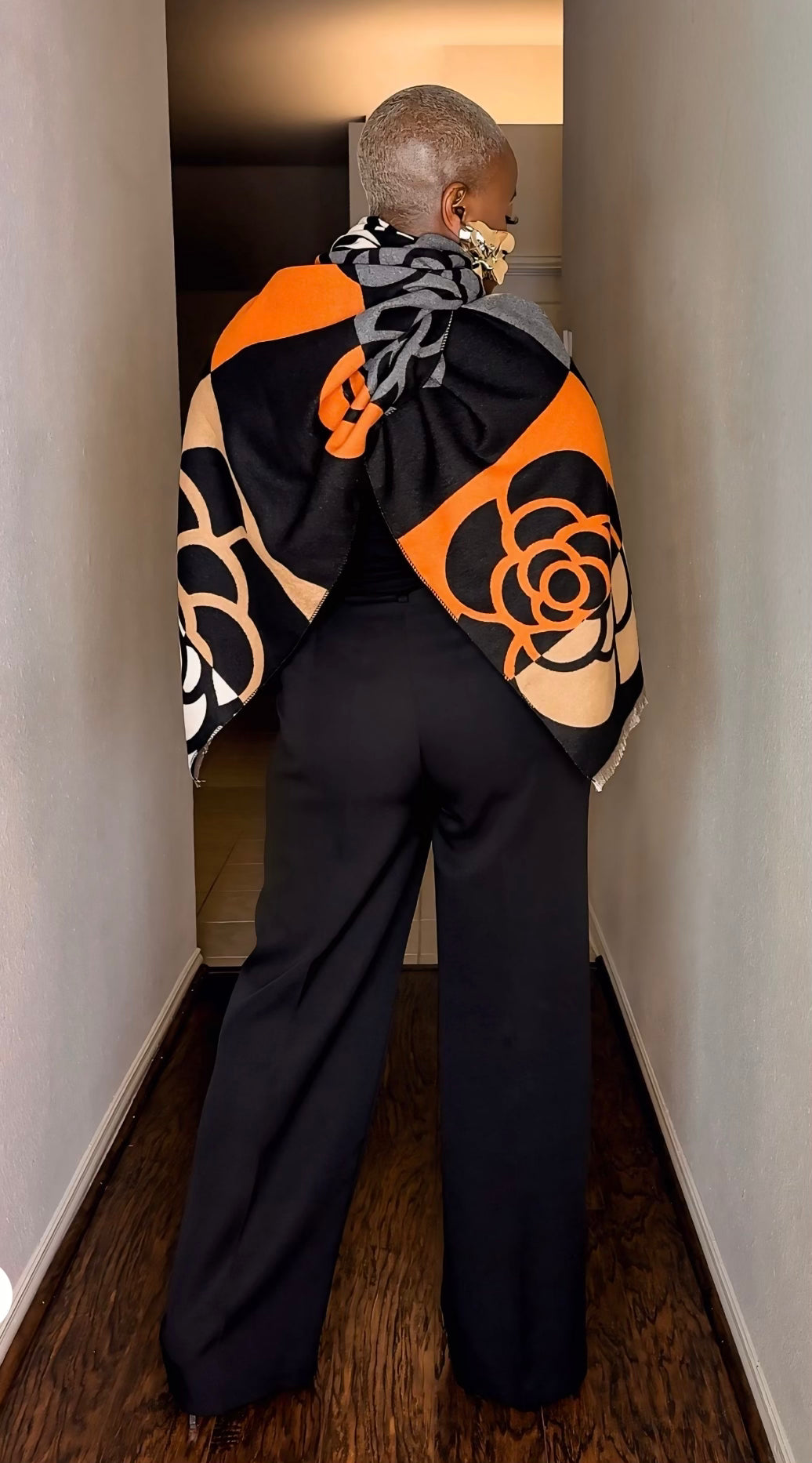 Elevate your fall wardrobe with The Noir & Amber Statement Scarf. Featuring an abstract floral pattern in rich tones of black, camel, and burnt amber, this oversized wrap is the ultimate mix of warmth and sophistication.
