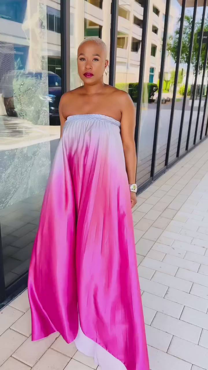 Turn heads in the effortless elegance of our Velvet Dusk Pleated Dress. This strapless stunner features a dreamy ombré blend that fades from soft lilac to deep wine, with luxe accordion pleats that move beautifully with every step. Lightweight with a silky sheen, it’s perfect for evening events, destination dinners, or anytime you want to make an unforgettable entrance. Just add heels and a clutch, and let the dress do the rest.