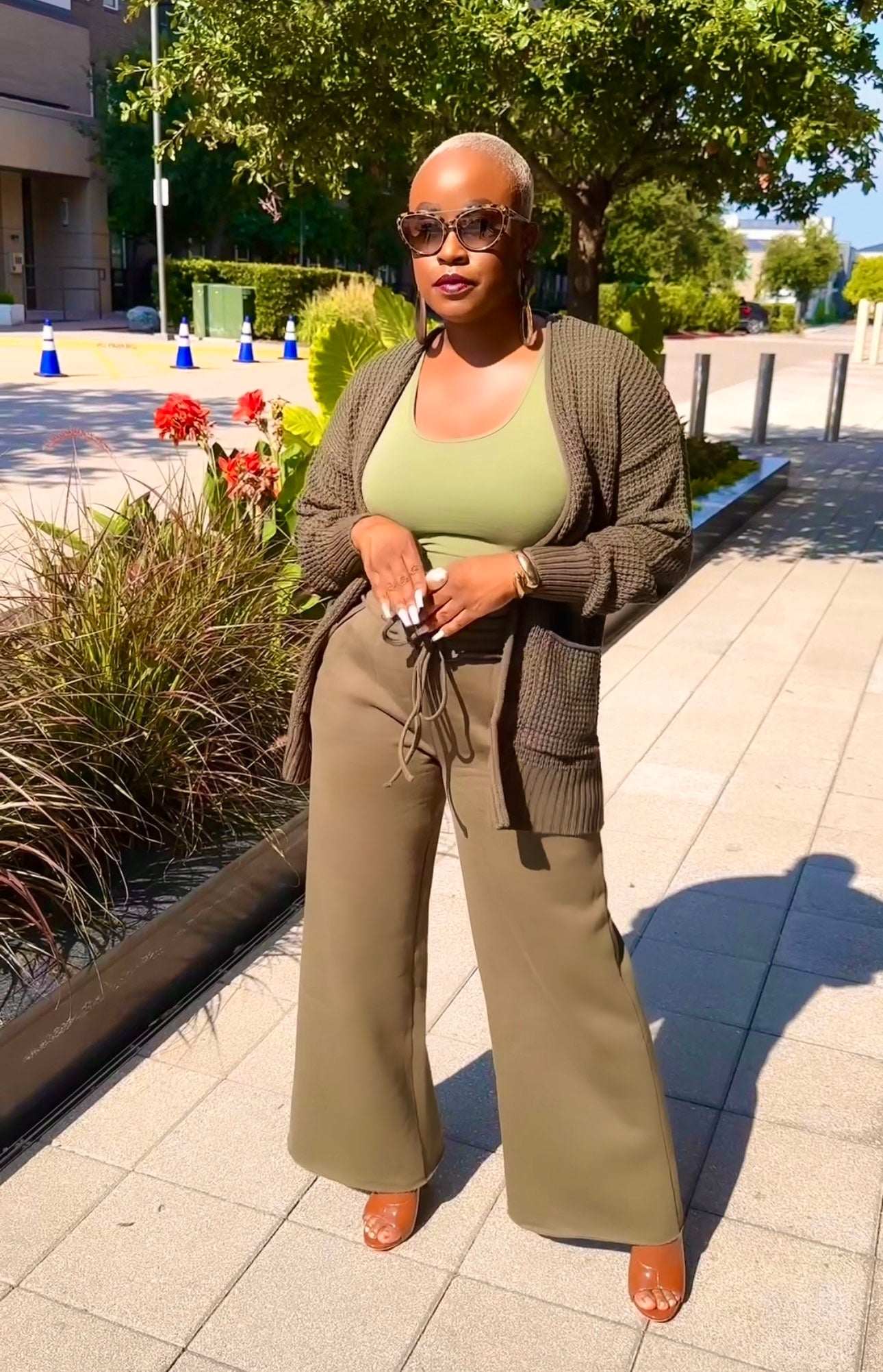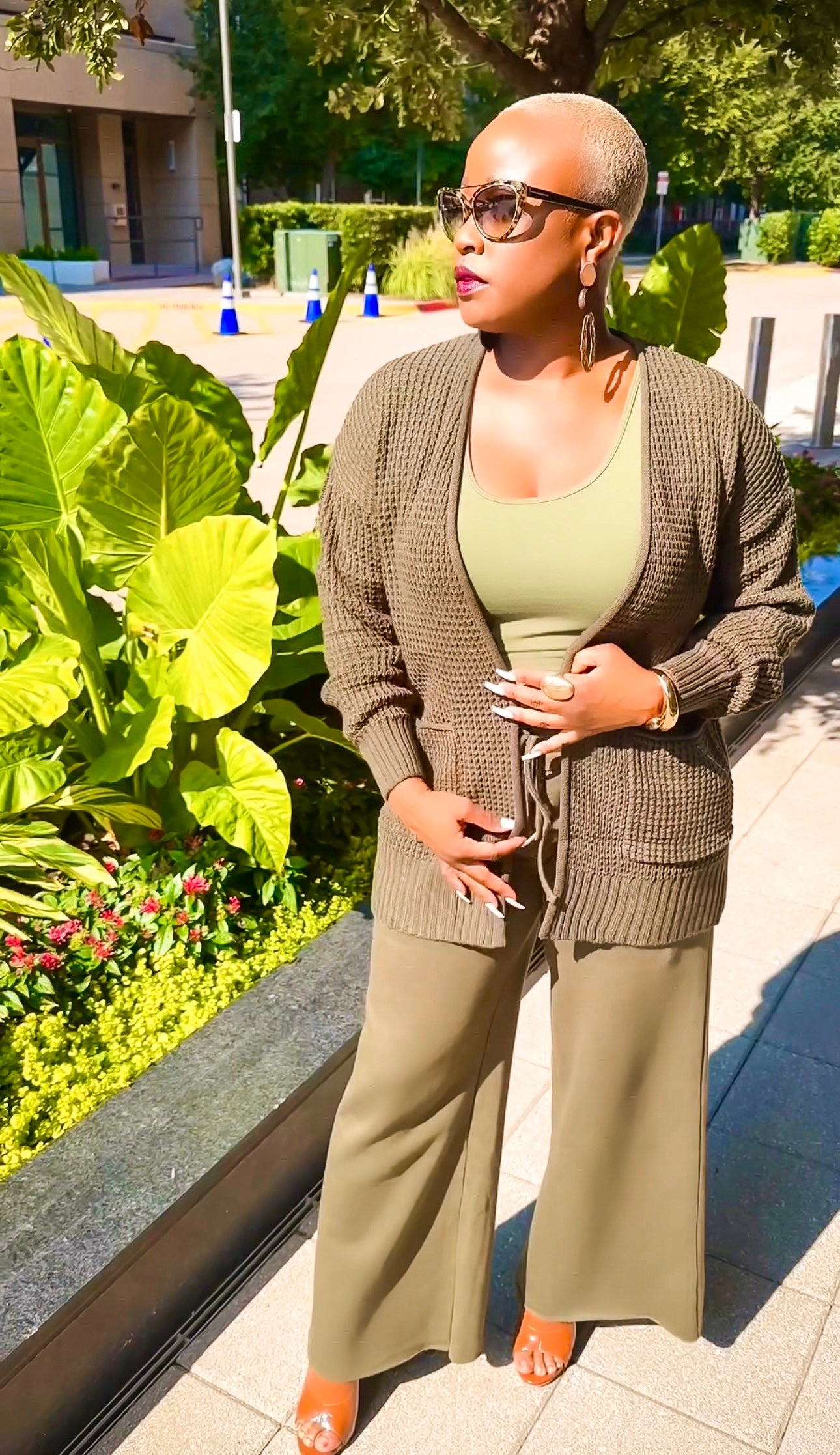 Winter Warm Open Cardigan Sweater Set (Dark Olive)